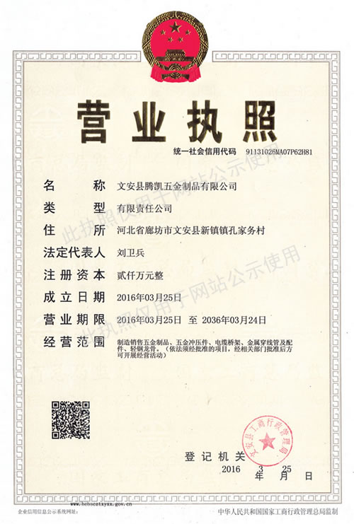 文安縣騰凱五金制品有限公司創(chuàng)建于2006年,是電纜橋架制造廠商,位于河北省文安縣新鎮(zhèn)工業(yè)區(qū),東連京開線106國(guó)道,北接津保高速公路,背靠京九大動(dòng)脈,地處北京、天津、保定三角地帶,交通便捷,通訊發(fā)達(dá)。